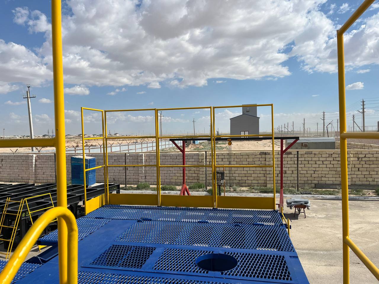 Приустьевая площадка используется для выполнения капитального ремонта в скважинах и технического обслуживания комплекта вспомогательных деталей. Варианты исполнения: с меняющейся высотой рабочего пространства подвижная, стационарная.